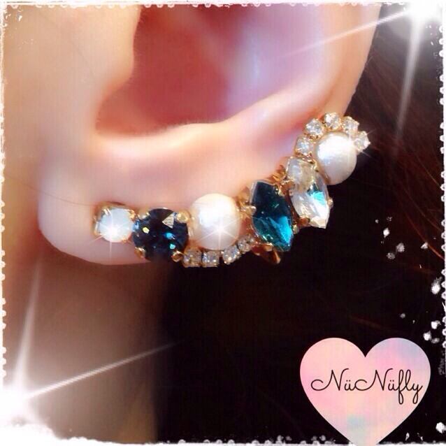 スワロフスキーをふんだんに使った、とても豪華なイヤーカフに仕上げました❣❣