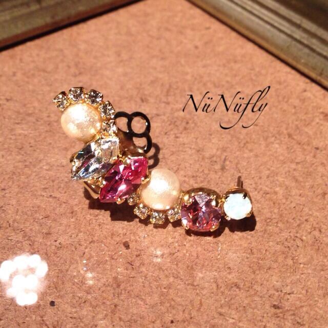 ピンクコットンパール使用、スワロフスキーをふんだんに使ったとても豪華なイヤーカフに仕上げました❣❣