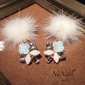女の子が大好きなキラキラとフワフワをコラボしたビジューポンポンピアス&イヤリング♡