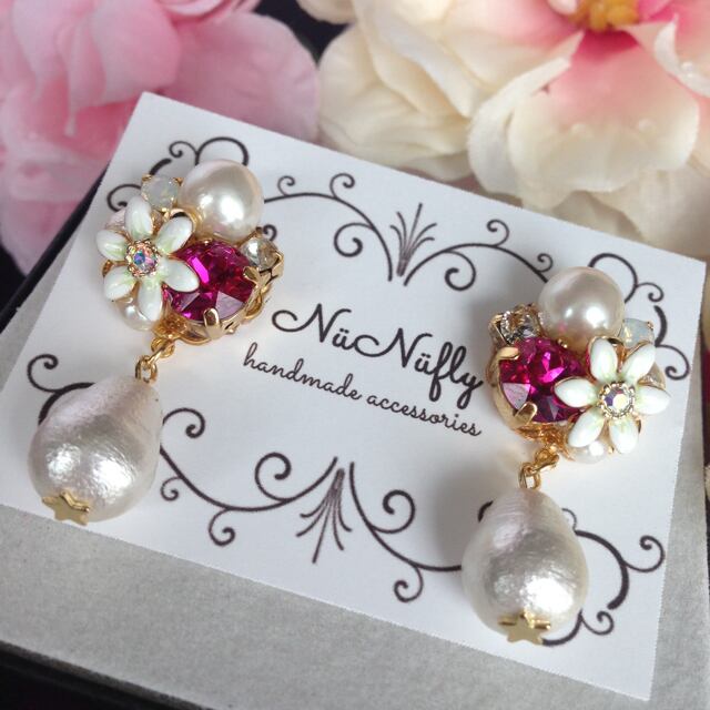 ご要望があれば、ツユ型のコットンパールをキャッチにお付けすることもできるので、2way仕様で楽しんで頂けます♡